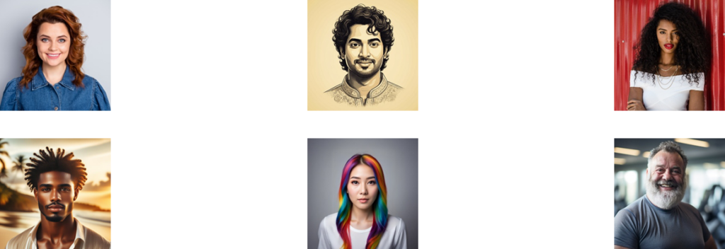 - 多様性:年齢、性別、肌色など様々なバリエーション
