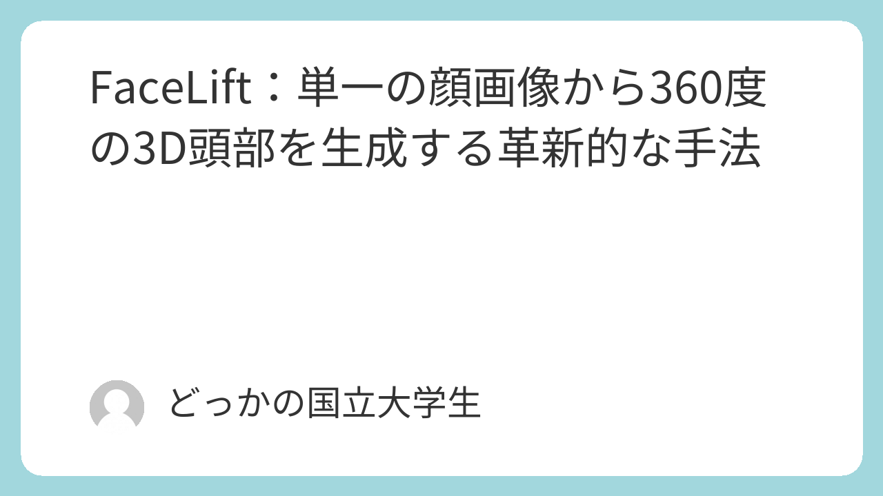 この手法は、1枚の顔写真から高品質な3D頭部モデルを自動生成できるというもので、その完成度の高さに驚きました。感動です。実装をクローンして動かしてみた結果も一緒に共有します。