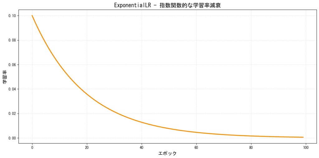 学習率を指数関数的に滑らかに減少させるスケジューラーです。