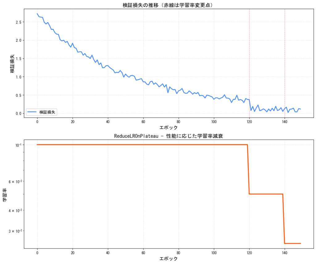 | 転移学習 | StepLR, ReduceLROnPlateau | 事前学習済みモデルの微調整に適合 |