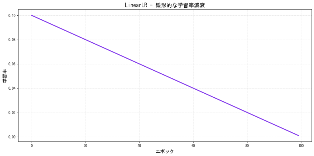 | 生成モデル(GAN) | ReduceLROnPlateau, LinearLR | 不安定な訓練に適応的に対応 |