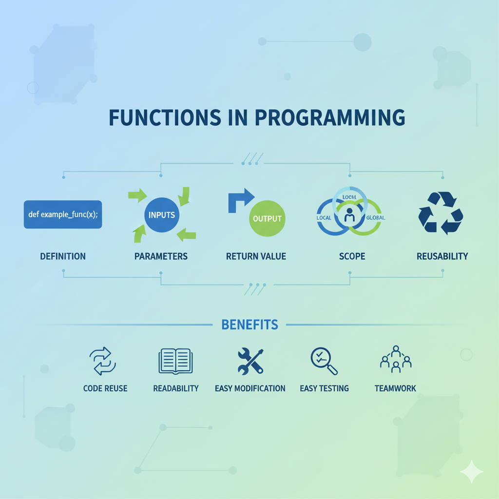 こんにちは!前回の【Python入門シリーズ⑤】では繰り返し処理について学習しました。今回は関数(かんすう)について詳しく解説していきます。関数は「処理をパッケージ化して名前をつけたもの」で、プログラムを整理整頓し、再利用可能にする強力な仕組みです。料理のレシピに名前をつけて保存するようなもので、一度作れば何度でも使い回すことができます!図や画像、イラストを使って分かりやすく解説していきますね。