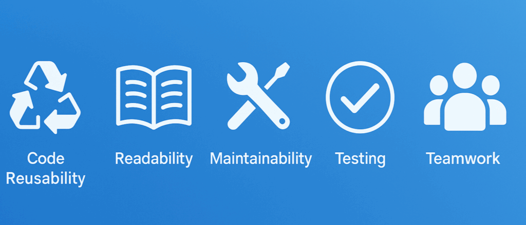 - 保守性の向上: 修正が必要な時、1箇所直せば全体に反映される
